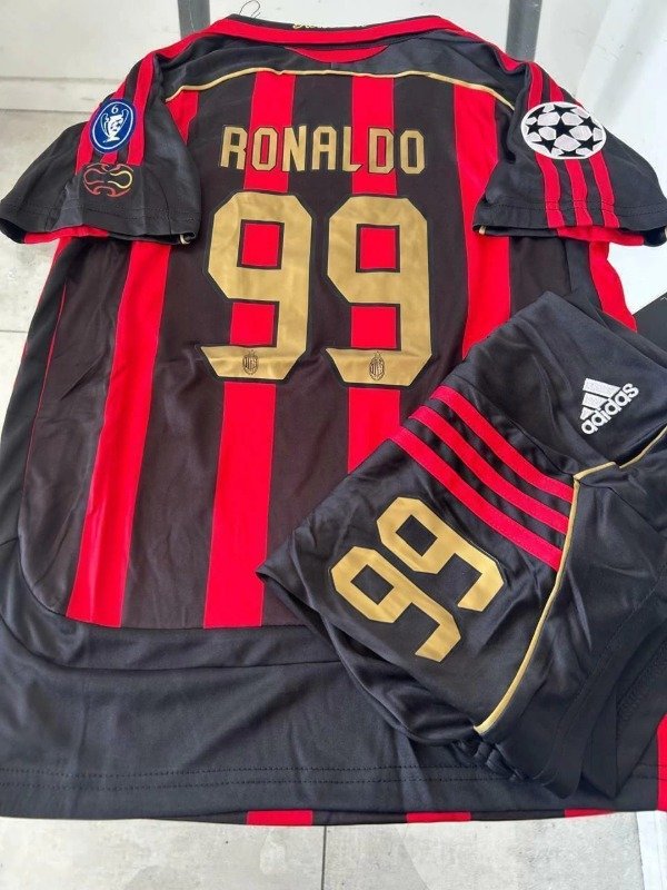 CONJUNTO IMPORTADO AC MILAN TITULAR RETRO 2006/2007 NIÑOS #99 RONALDO